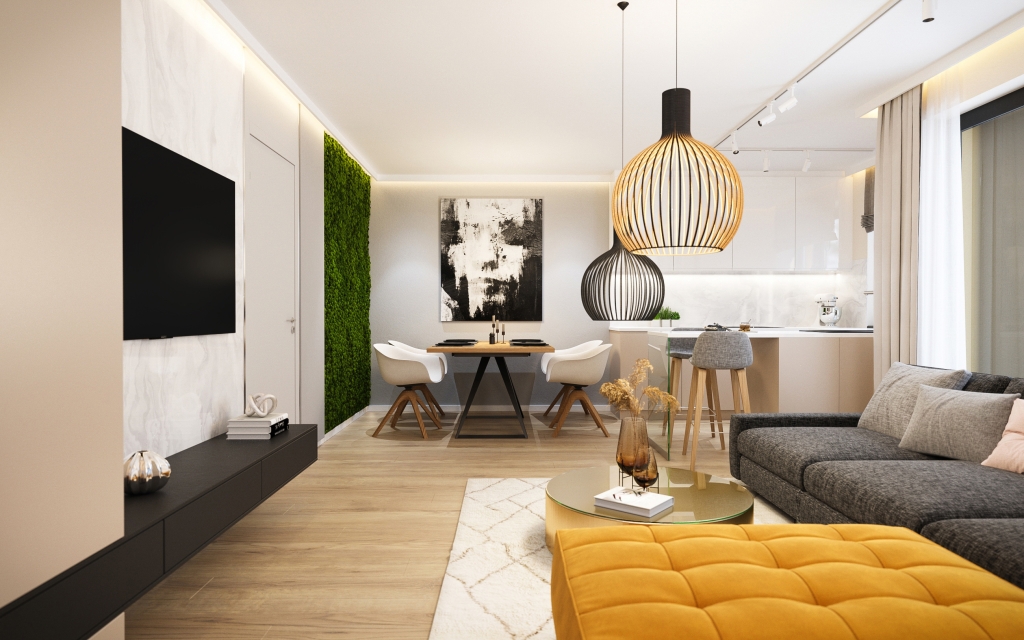 Belsőépítészeti látványterv modern nappali